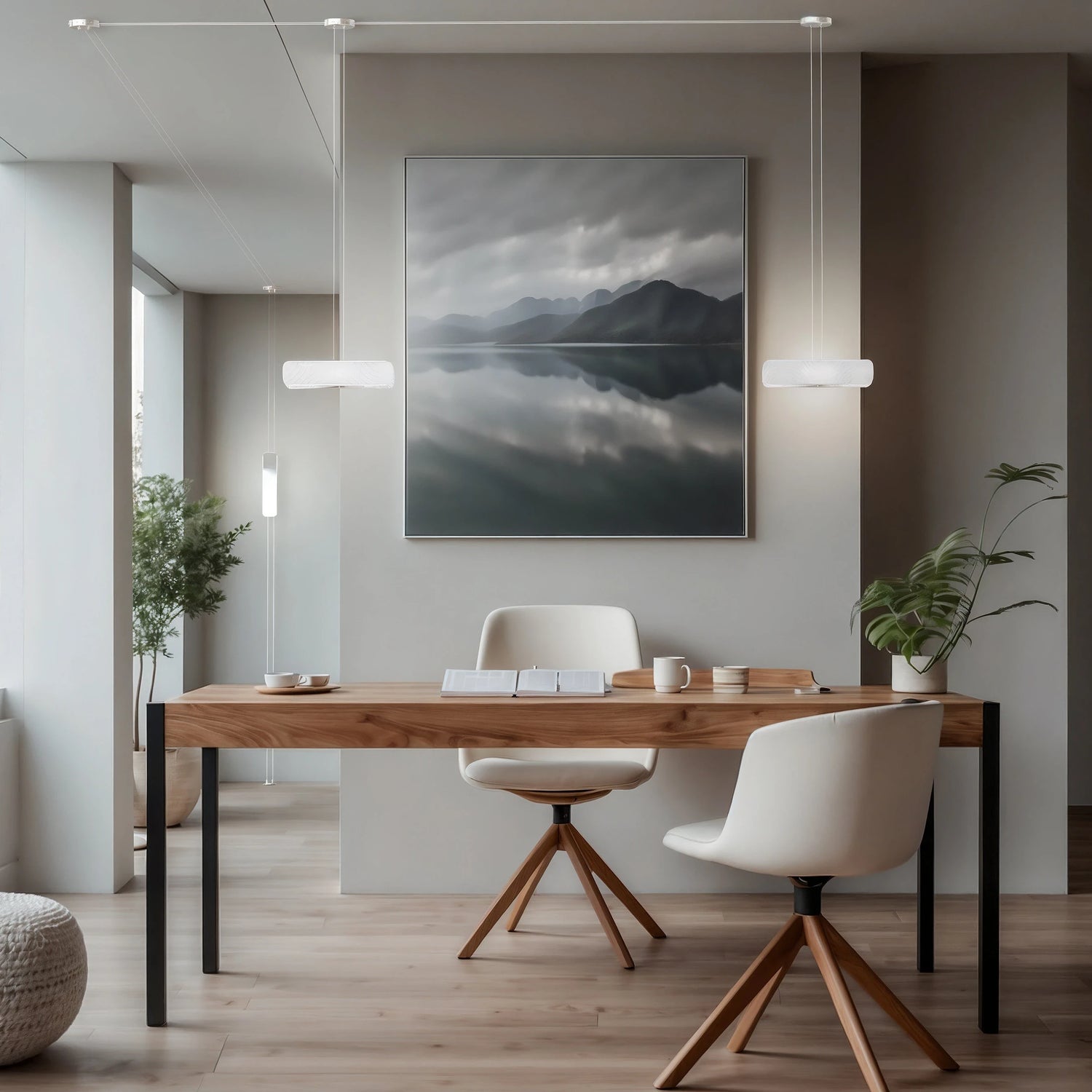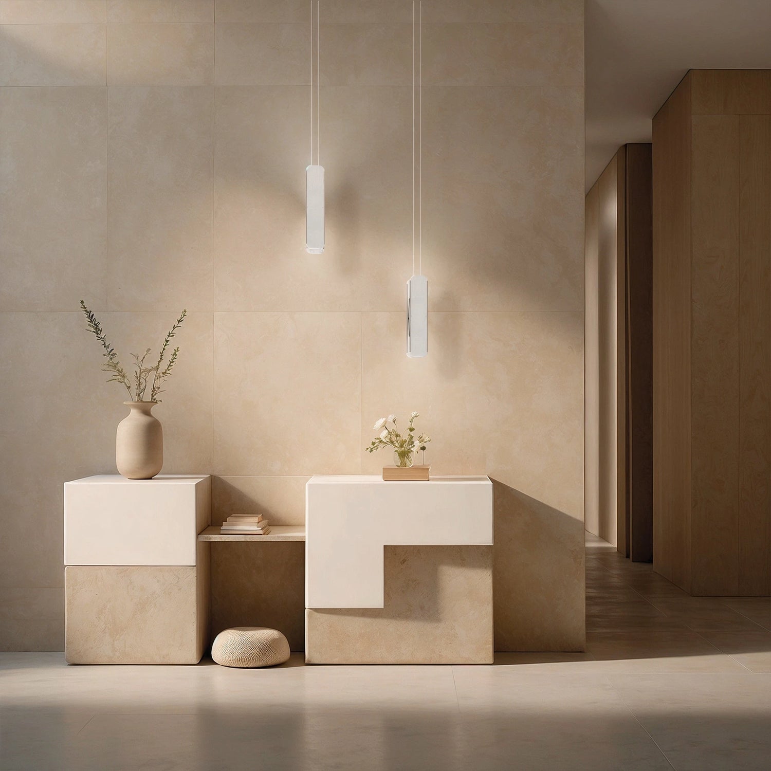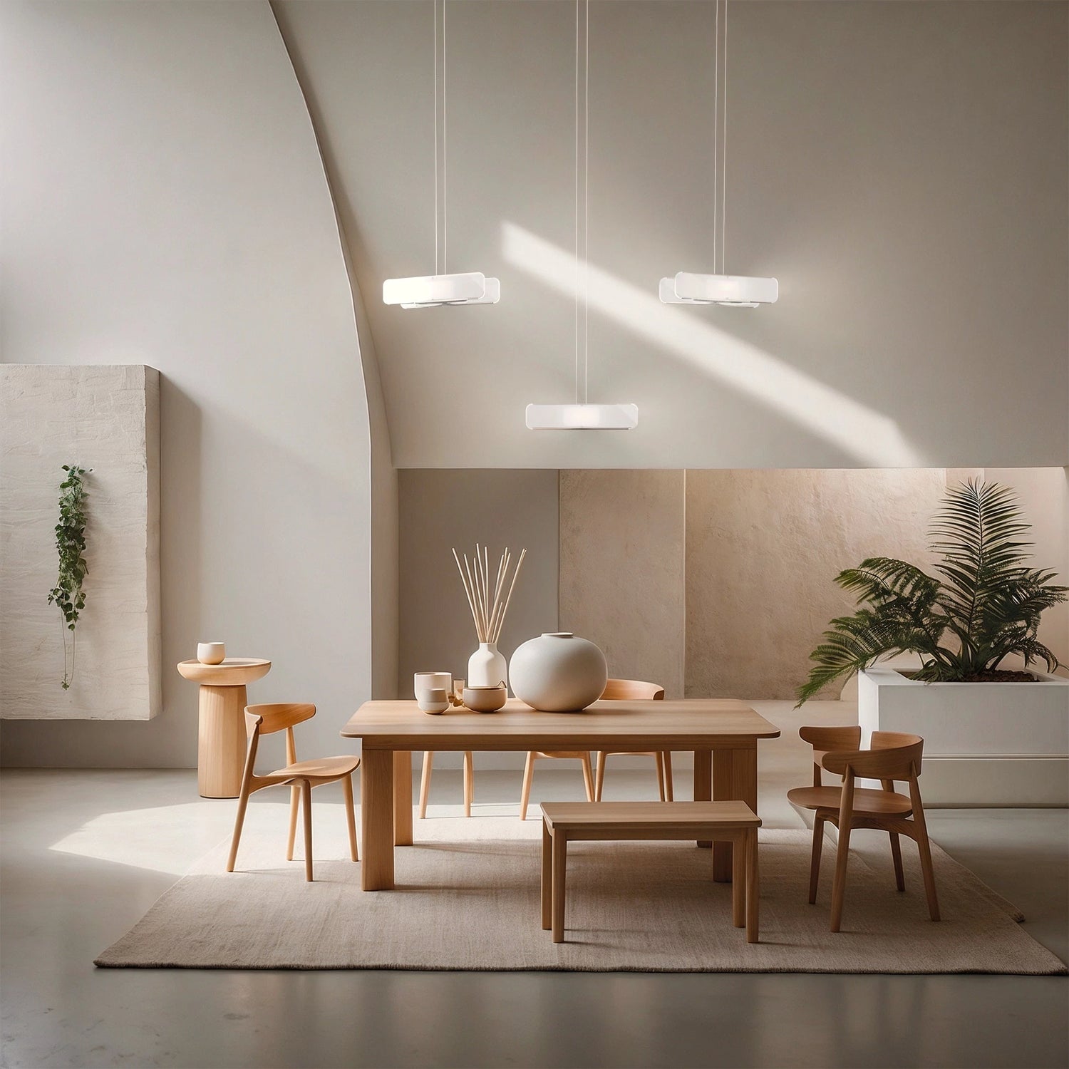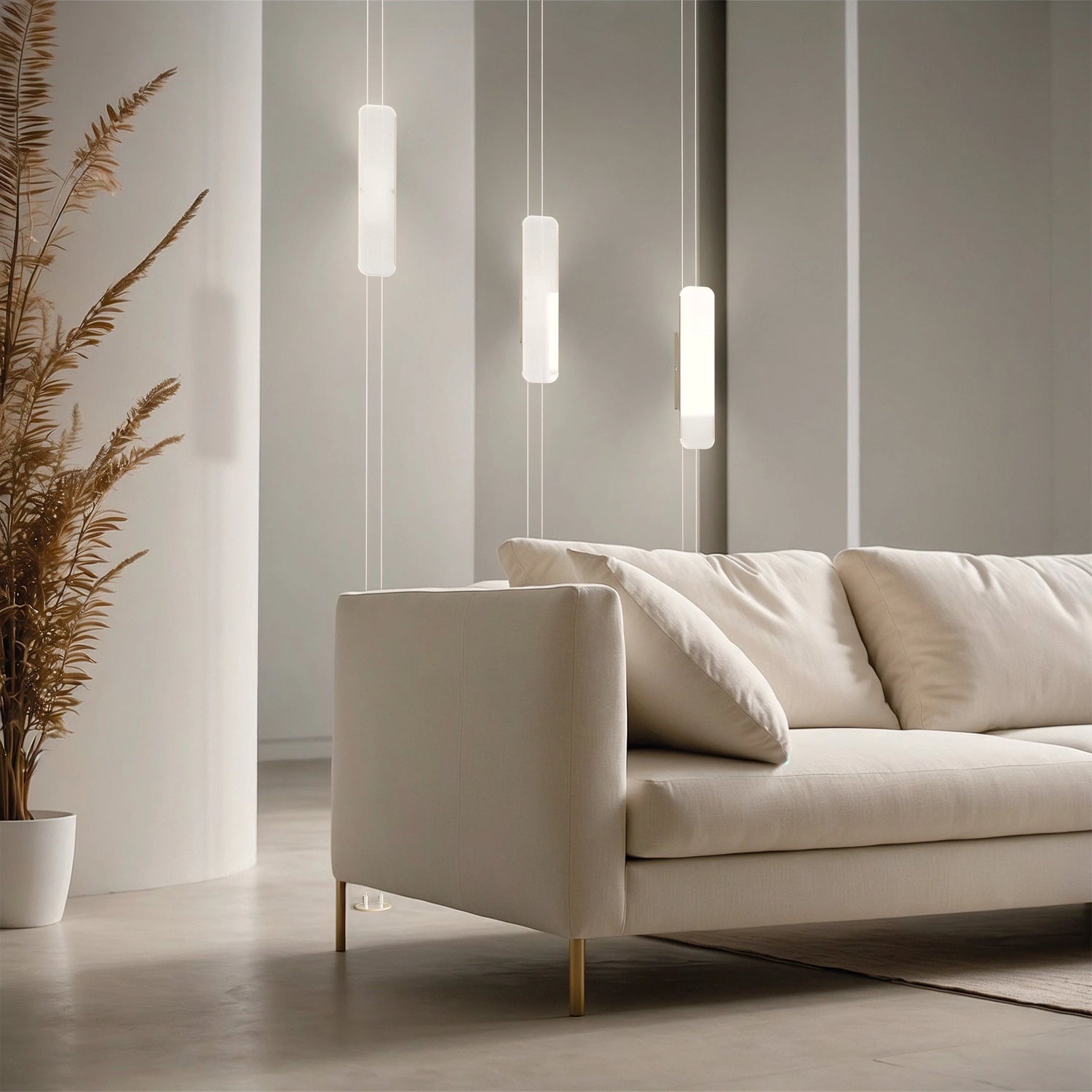 La sospensione verticale unisce minimalismo e raffinatezza, proiettando una luce delicata che esalta gli spazi con leggerezza.