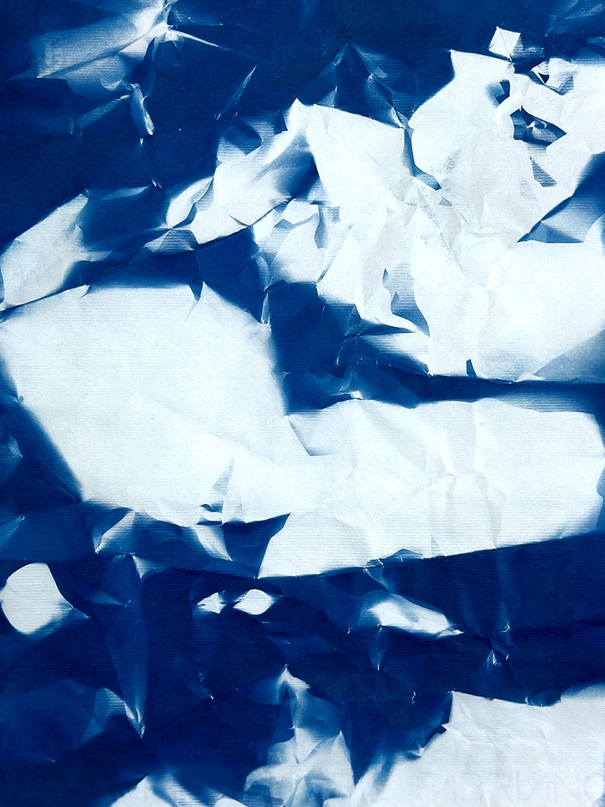 Nella collezione Utópia gli artisti rovesciano la pratica della cianotipia tradizionale: rinunciano a negativi e sagome ed affidano al foglio la genesi dell’opera.