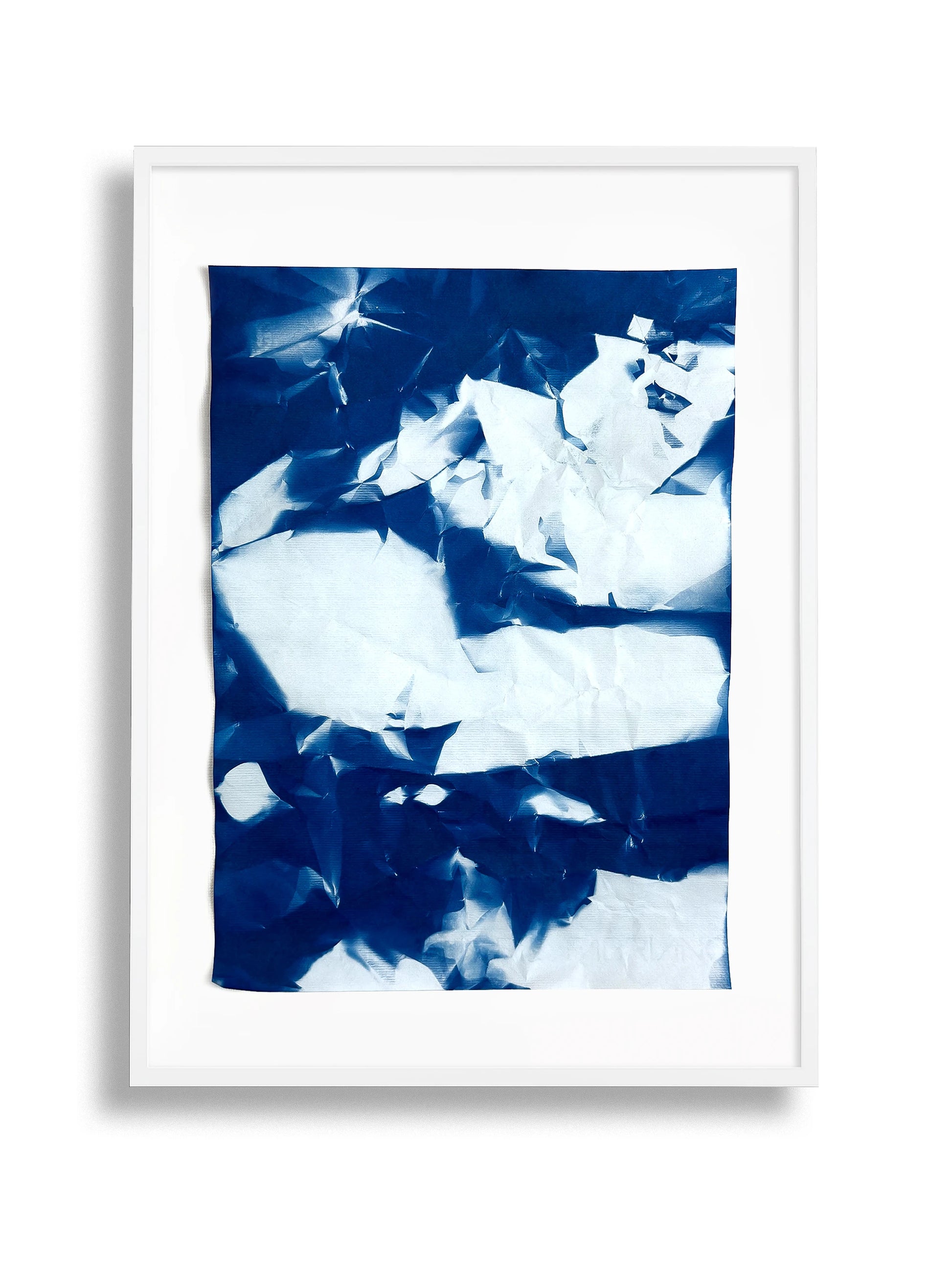 L’opera fa parte della collezione "Utòpia" - Serie "Archetipo", in cui la cianotipia, rivisitata, viene svincolata da negativi e sagome. Sono ora le pieghe stesse della carta a generare pieni e vuoti di luce, rivelando trame inattese. Ogni lavoro è un pezzo unico, frutto di un processo che trasforma l’assenza in presenza.