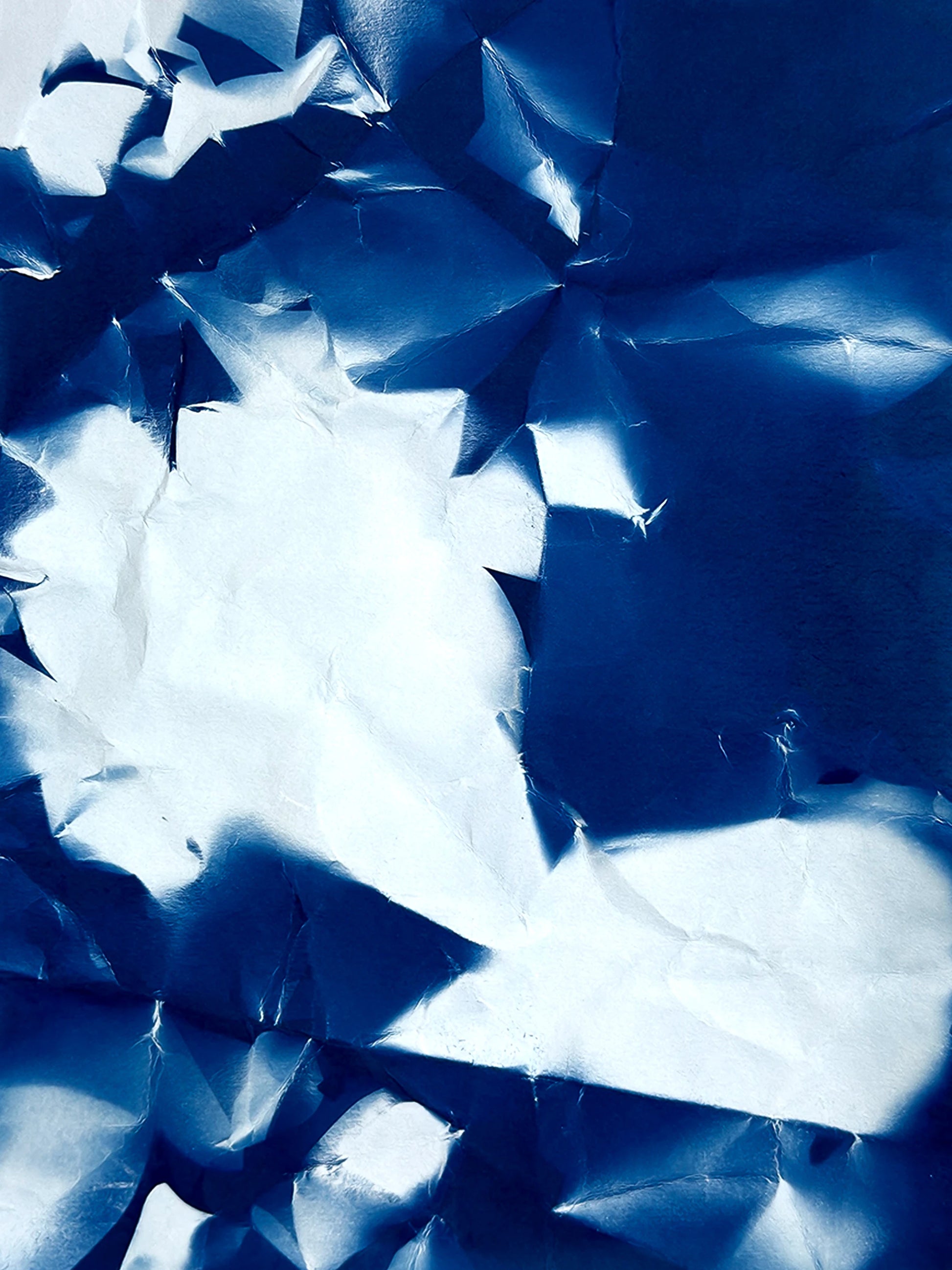 Nella collezione Utópia gli artisti rovesciano la pratica della cianotipia tradizionale: rinunciano a negativi e sagome ed affidano al foglio la genesi dell’opera.