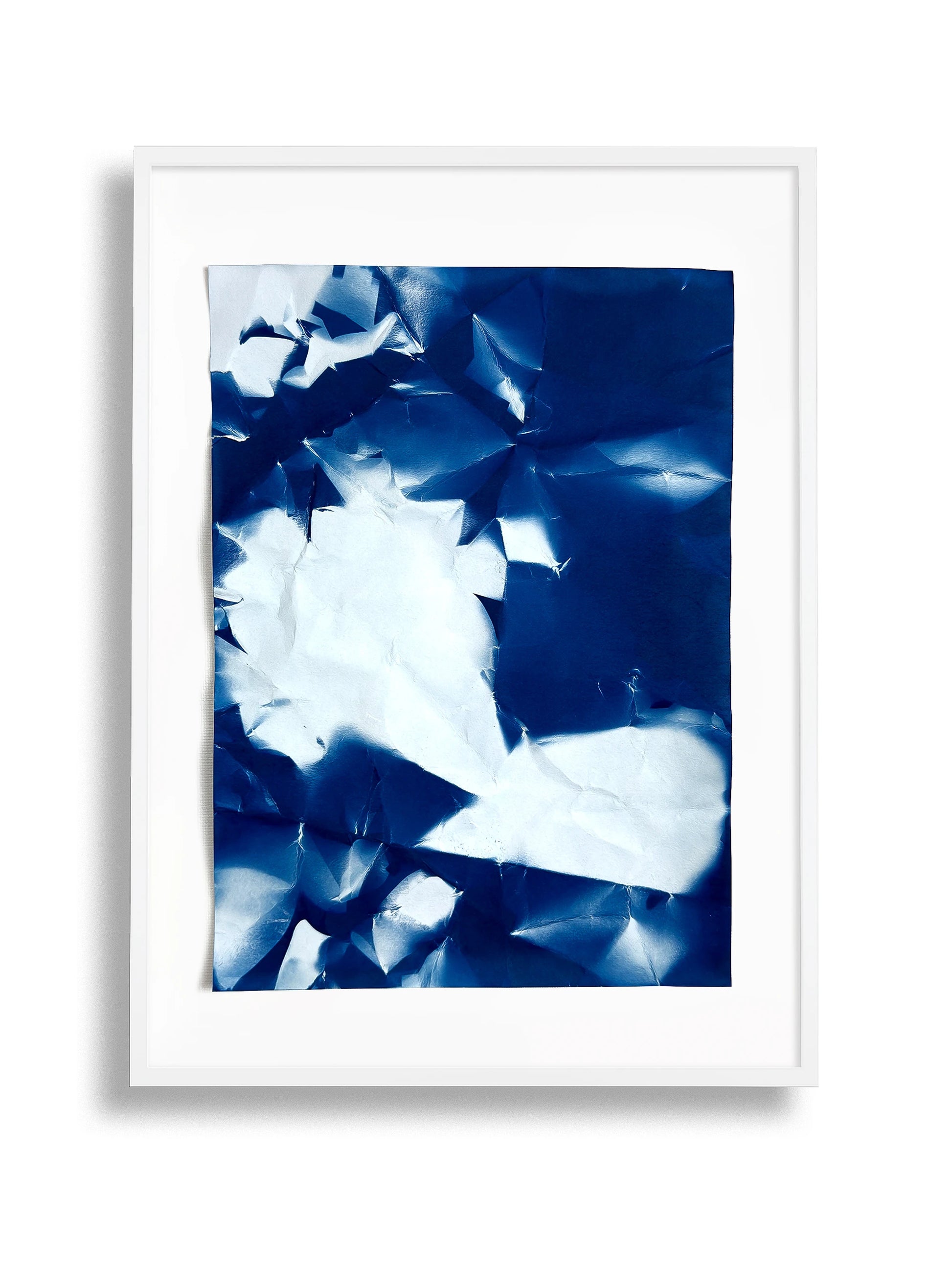 L’opera fa parte della collezione "Utòpia" - Serie "Archetipo", in cui la cianotipia, rivisitata, viene svincolata da negativi e sagome. Sono ora le pieghe stesse della carta a generare pieni e vuoti di luce, rivelando trame inattese. Ogni lavoro è un pezzo unico, frutto di un processo che trasforma l’assenza in presenza.