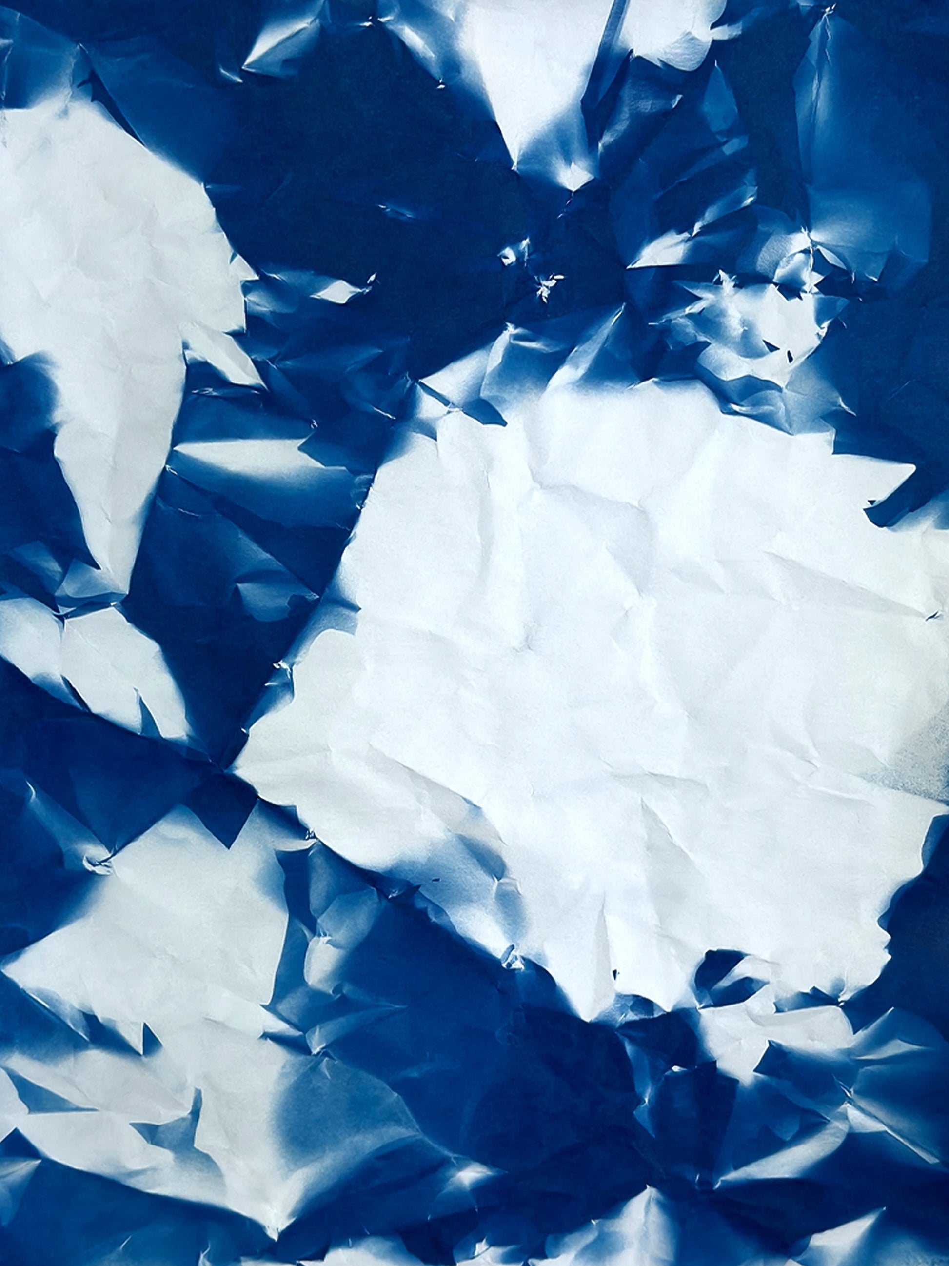 Nella collezione Utópia gli artisti rovesciano la pratica della cianotipia tradizionale: rinunciano a negativi e sagome ed affidano al foglio la genesi dell’opera.