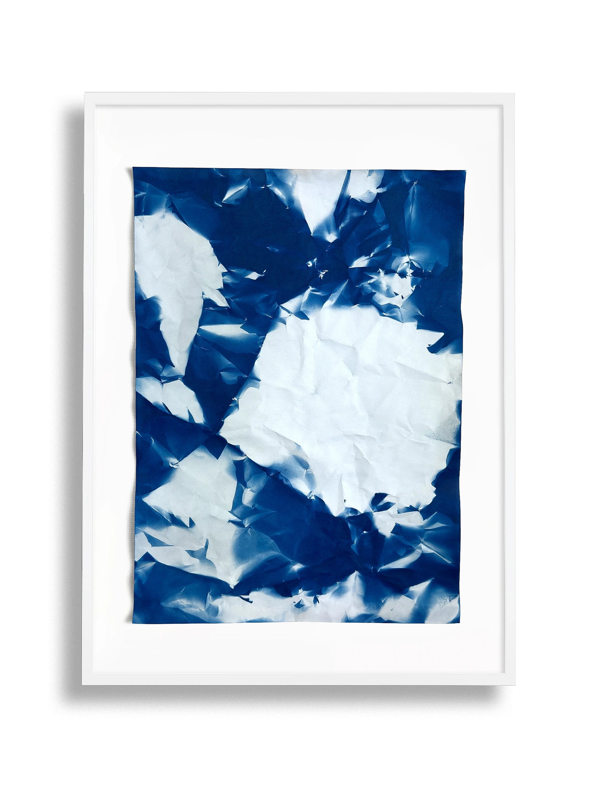 L’opera fa parte della collezione "Utòpia" - Serie "Archetipo", in cui la cianotipia, rivisitata, viene svincolata da negativi e sagome. Sono ora le pieghe stesse della carta a generare pieni e vuoti di luce, rivelando trame inattese. Ogni lavoro è un pezzo unico, frutto di un processo che trasforma l’assenza in presenza.