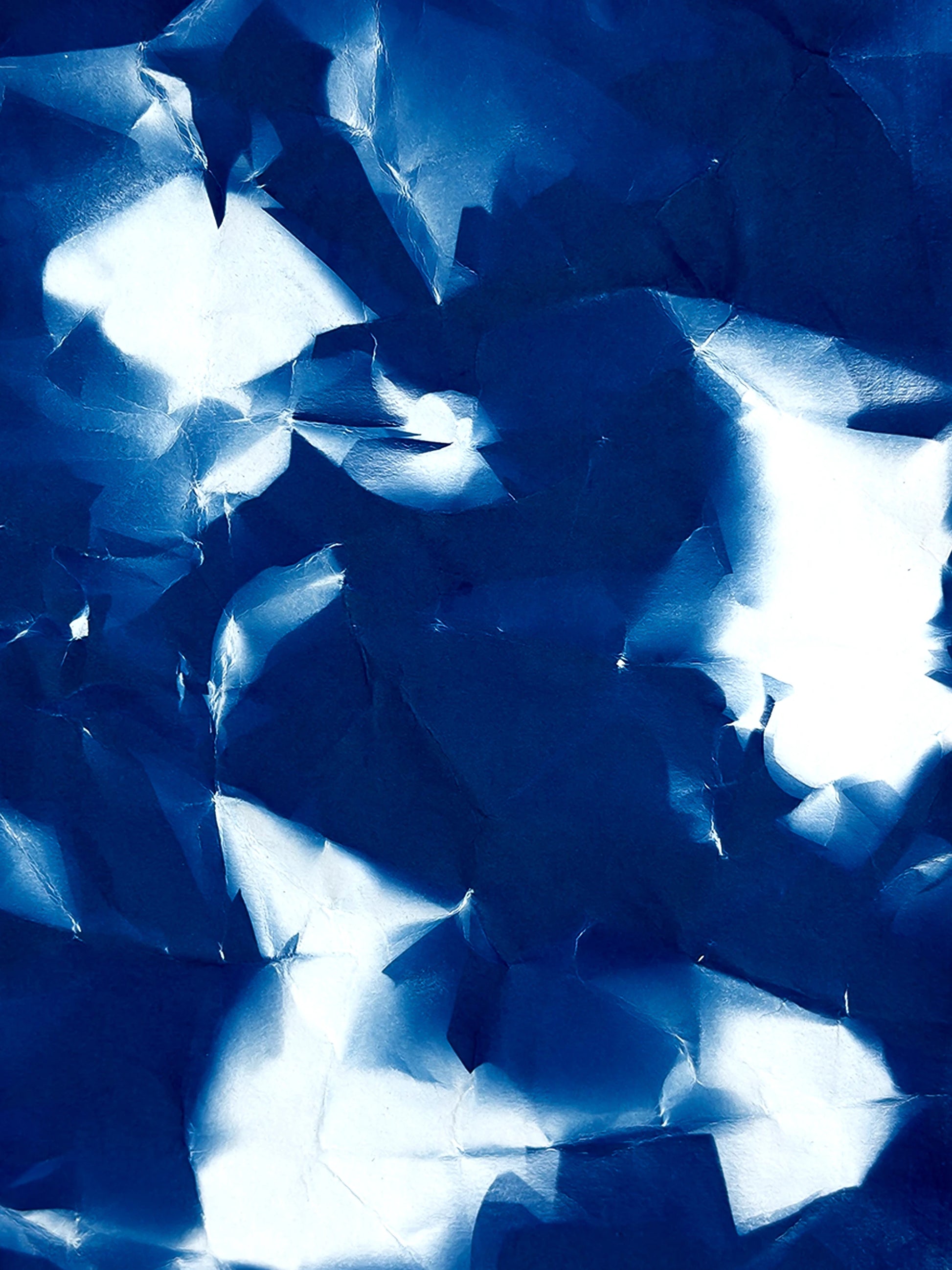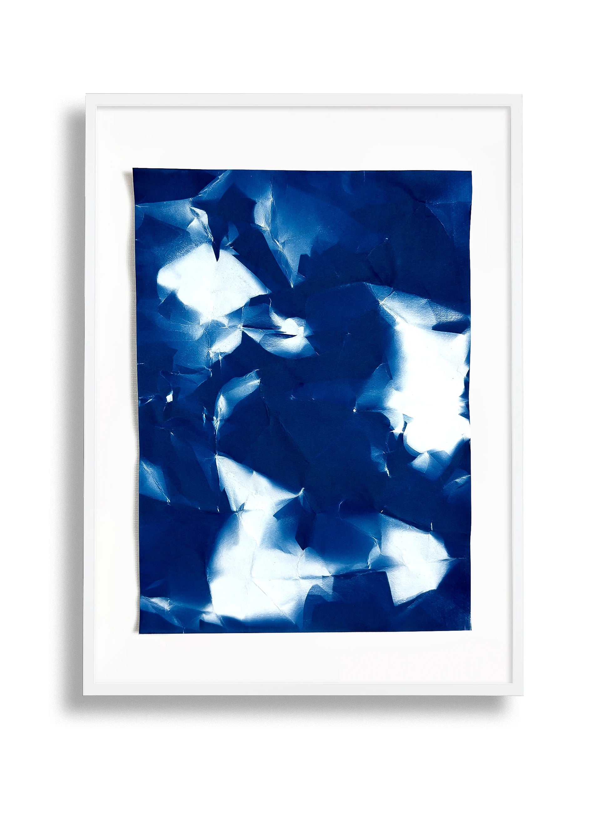 L’opera fa parte della collezione "Utòpia" - Serie "Archetipo", in cui la cianotipia, rivisitata, viene svincolata da negativi e sagome. Sono ora le pieghe stesse della carta a generare pieni e vuoti di luce, rivelando trame inattese. Ogni lavoro è un pezzo unico, frutto di un processo che trasforma l’assenza in presenza.