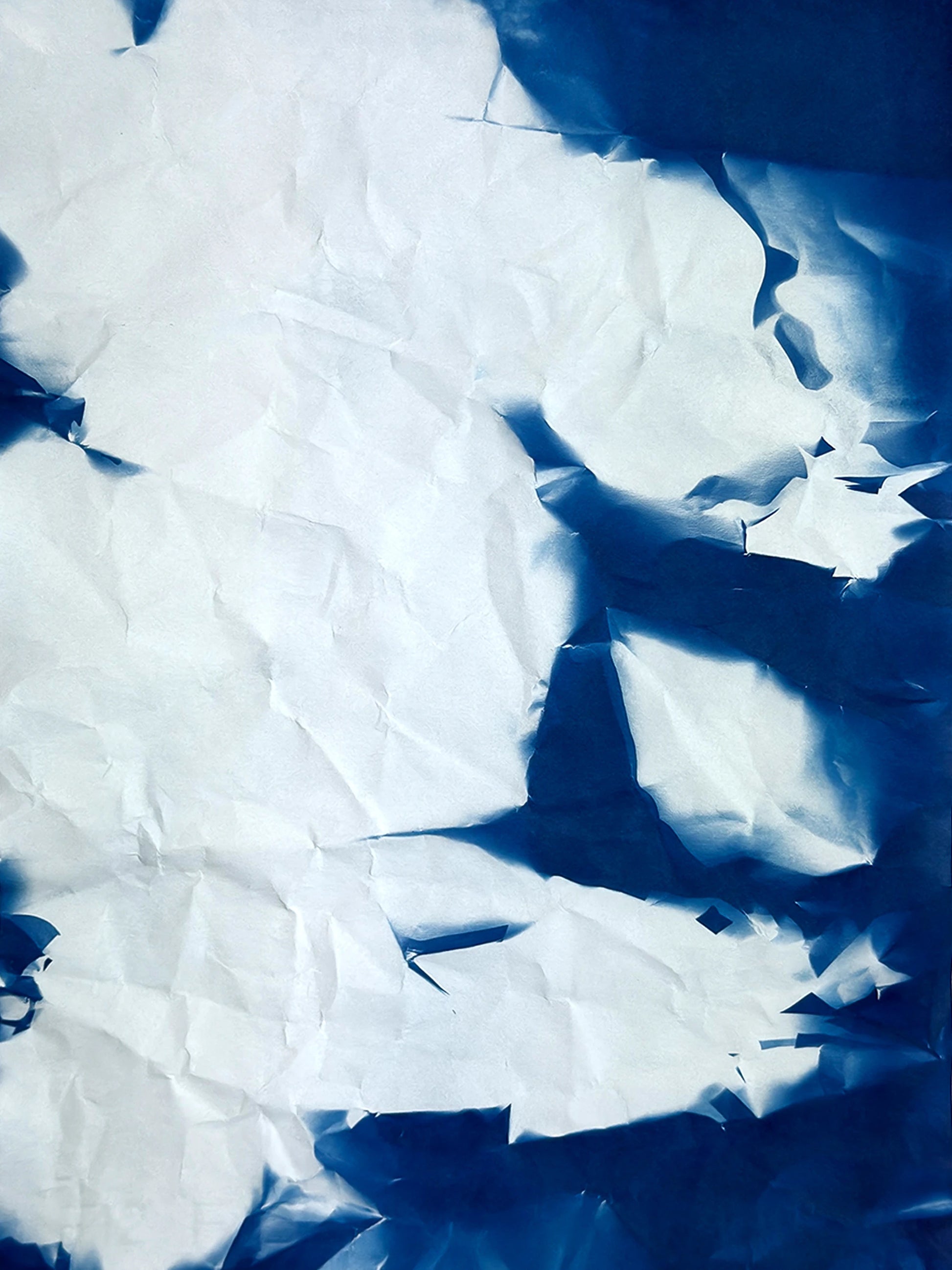 Nella collezione Utópia gli artisti rovesciano la pratica della cianotipia tradizionale: rinunciano a negativi e sagome ed affidano al foglio la genesi dell’opera.