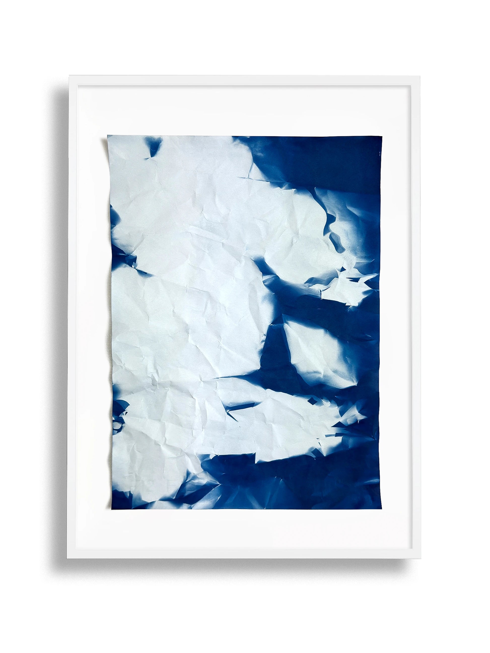 L’opera fa parte della collezione "Utòpia" - Serie "Archetipo", in cui la cianotipia, rivisitata, viene svincolata da negativi e sagome. Sono ora le pieghe stesse della carta a generare pieni e vuoti di luce, rivelando trame inattese. Ogni lavoro è un pezzo unico, frutto di un processo che trasforma l’assenza in presenza.