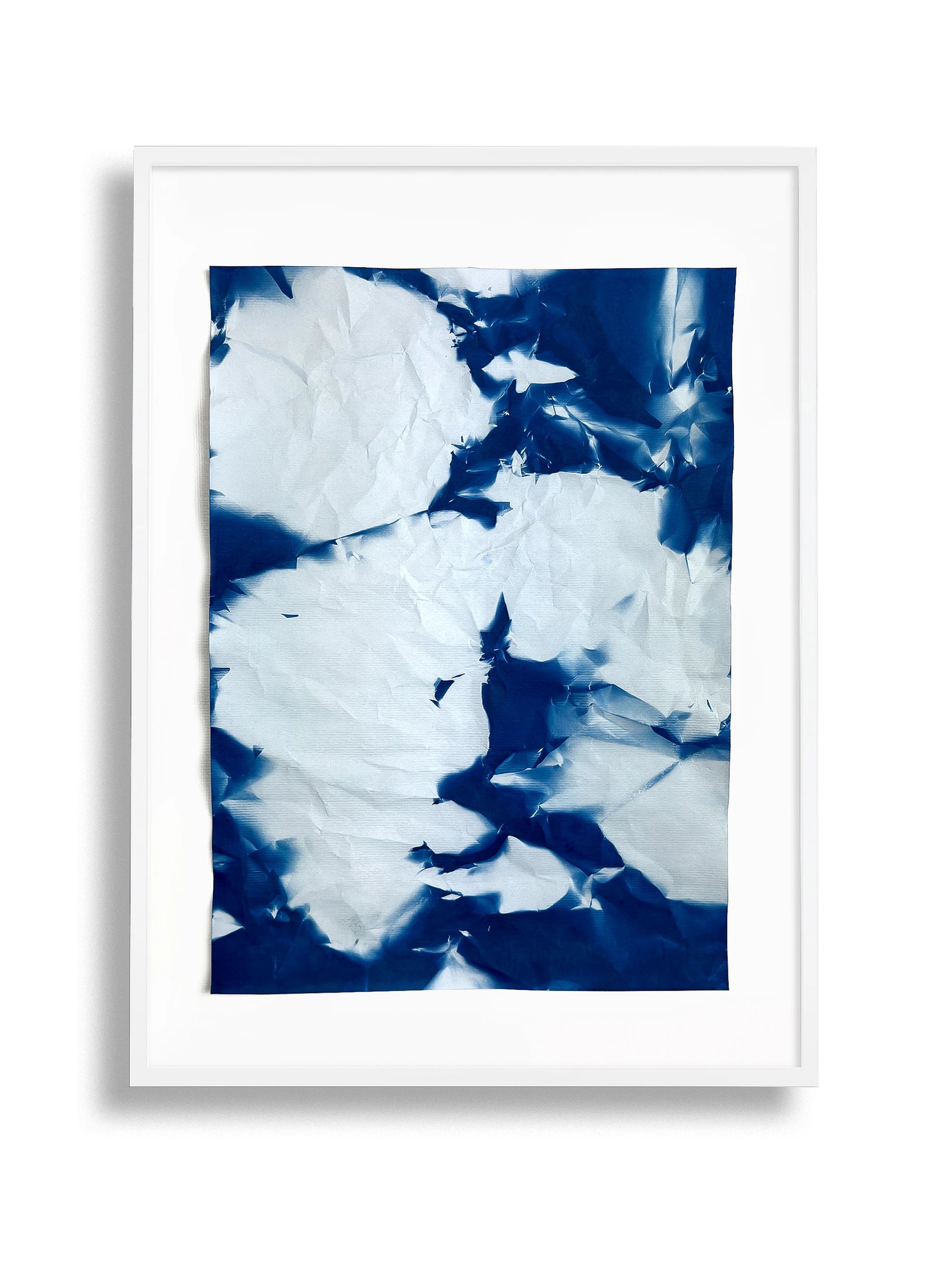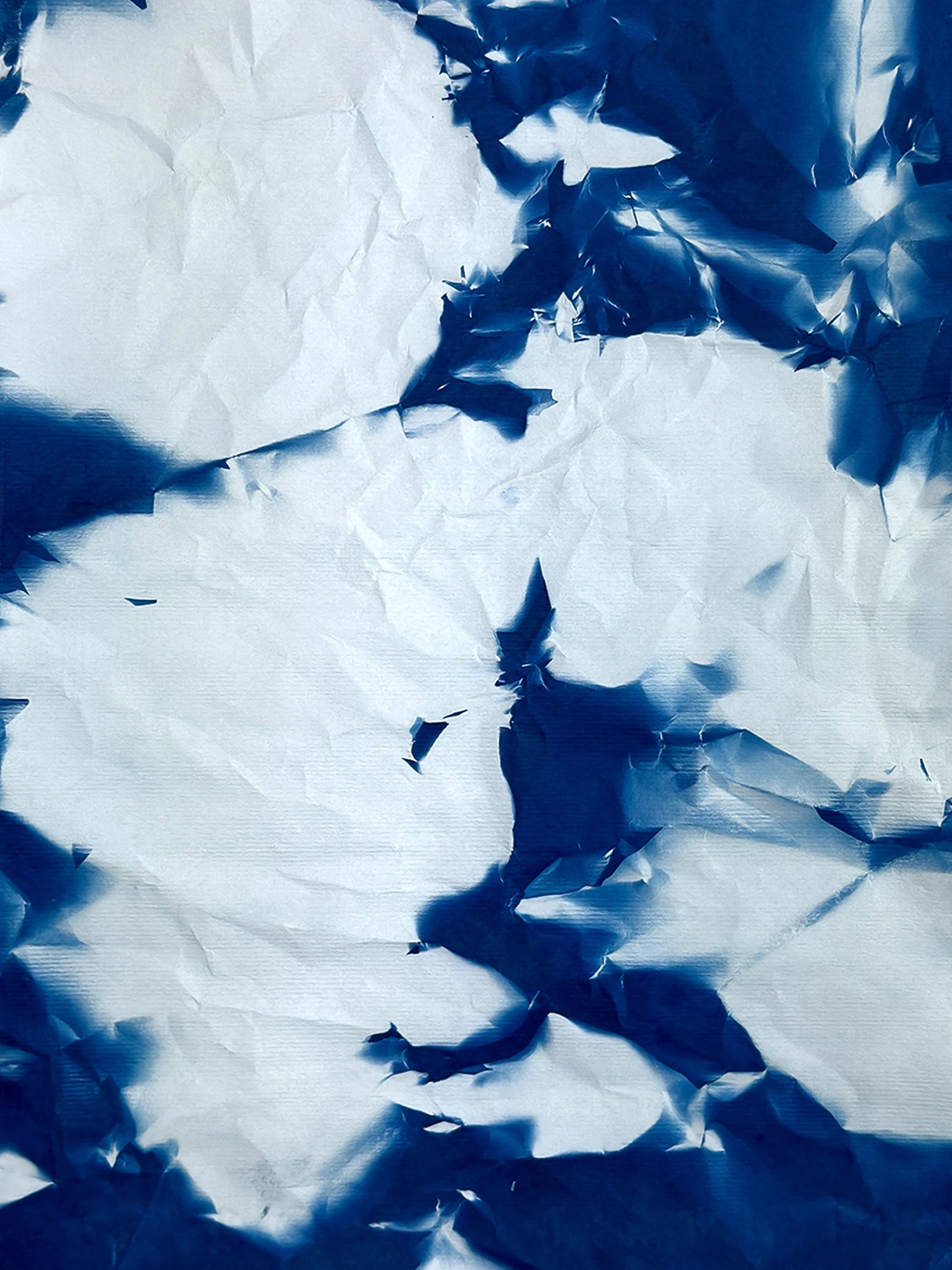 L’opera fa parte della collezione "Utòpia" - Serie "Archetipo", in cui la cianotipia, rivisitata, viene svincolata da negativi e sagome. Sono ora le pieghe stesse della carta a generare pieni e vuoti di luce, rivelando trame inattese. Ogni lavoro è un pezzo unico, frutto di un processo che trasforma l’assenza in presenza.