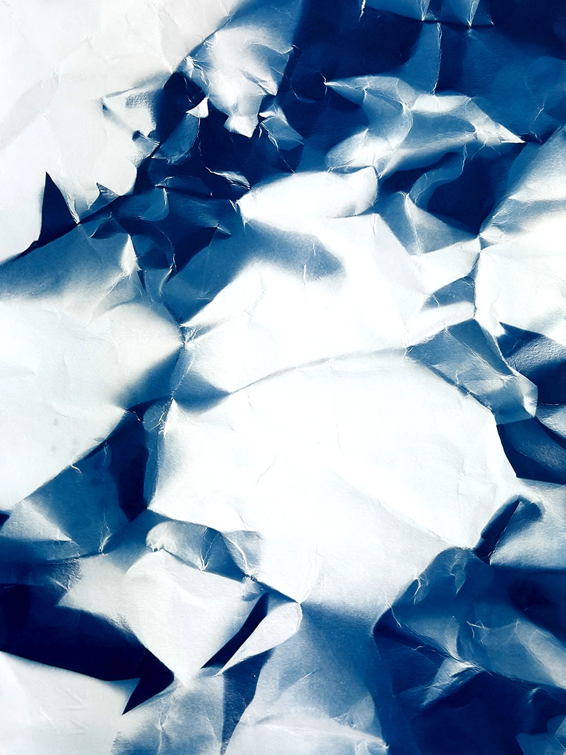 Nella collezione Utópia gli artisti rovesciano la pratica della cianotipia tradizionale: rinunciano a negativi e sagome ed affidano al foglio la genesi dell’opera.