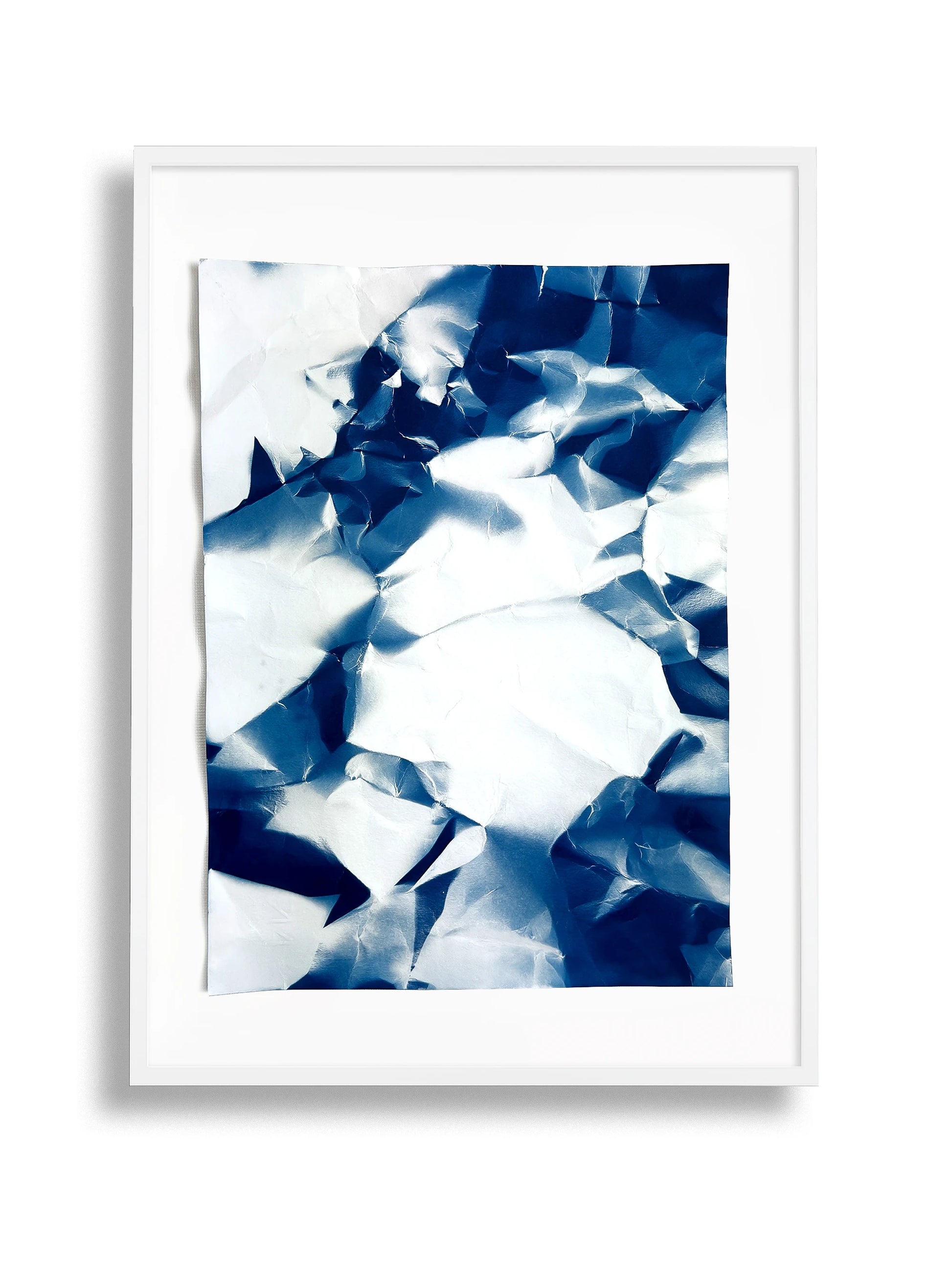L’opera fa parte della collezione "Utòpia" - Serie "Archetipo", in cui la cianotipia, rivisitata, viene svincolata da negativi e sagome. Sono ora le pieghe stesse della carta a generare pieni e vuoti di luce, rivelando trame inattese. Ogni lavoro è un pezzo unico, frutto di un processo che trasforma l’assenza in presenza.