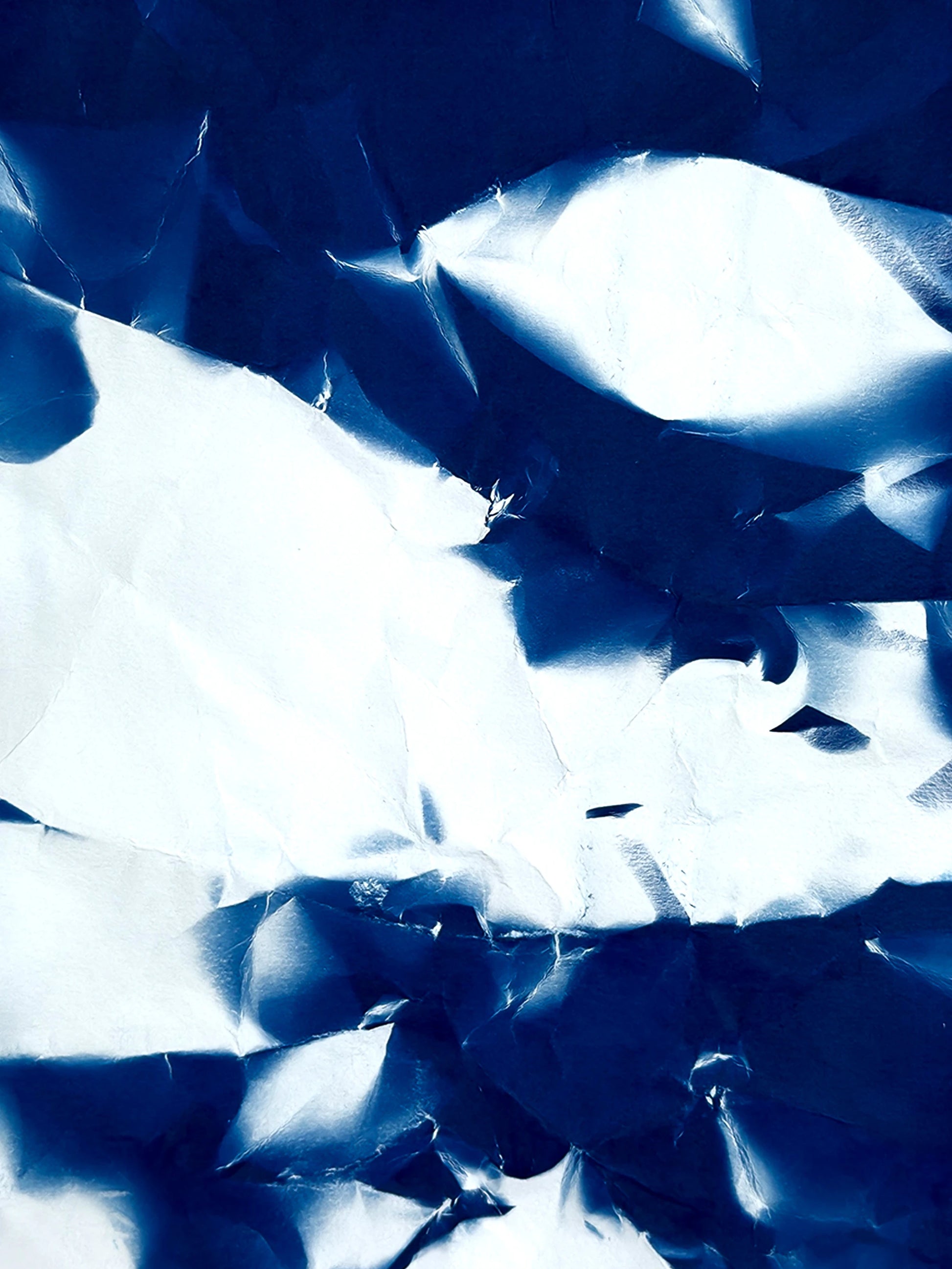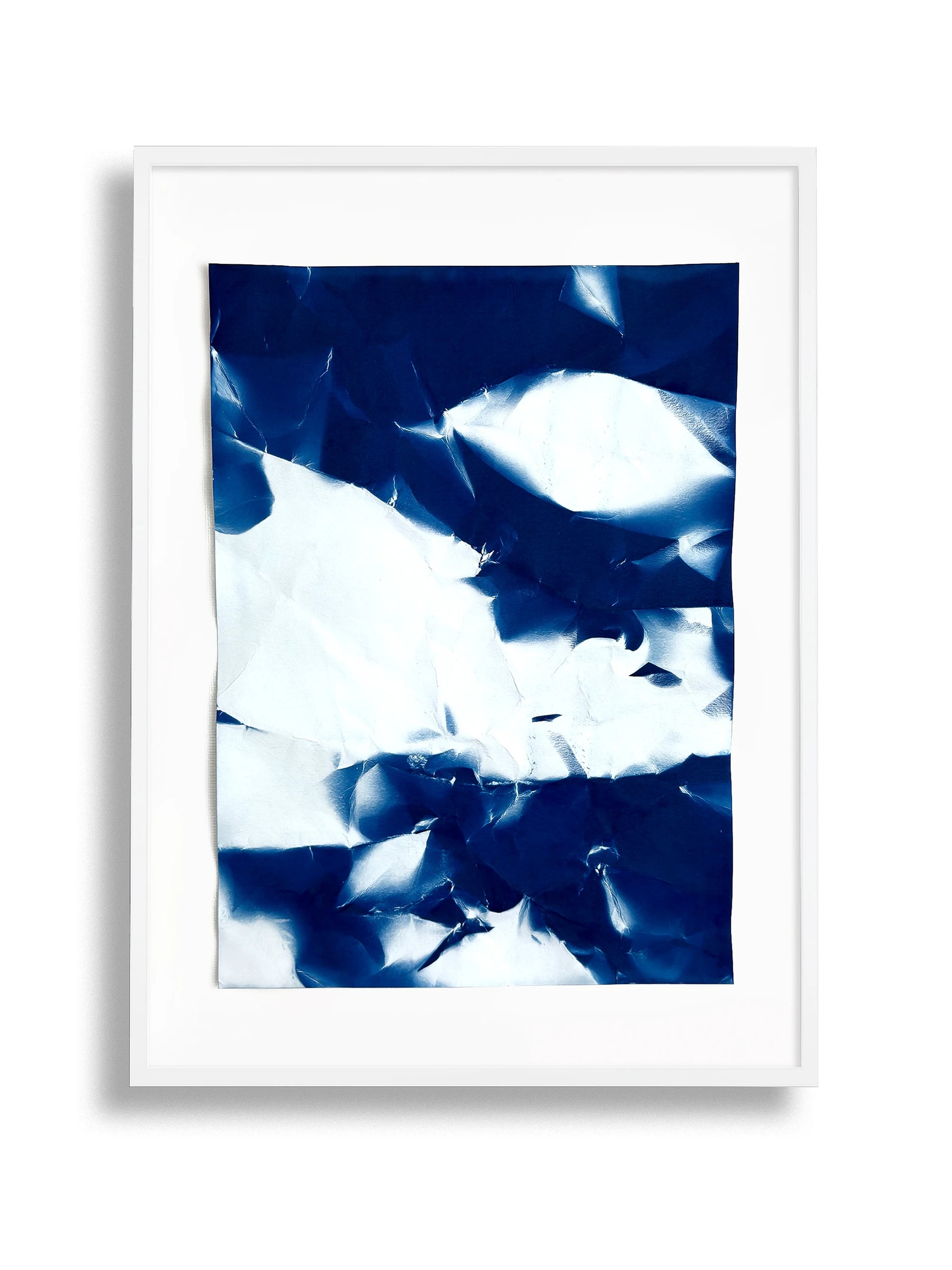 L’opera fa parte della collezione "Utòpia" - Serie "Archetipo", in cui la cianotipia, rivisitata, viene svincolata da negativi e sagome. Sono ora le pieghe stesse della carta a generare pieni e vuoti di luce, rivelando trame inattese. Ogni lavoro è un pezzo unico, frutto di un processo che trasforma l’assenza in presenza.