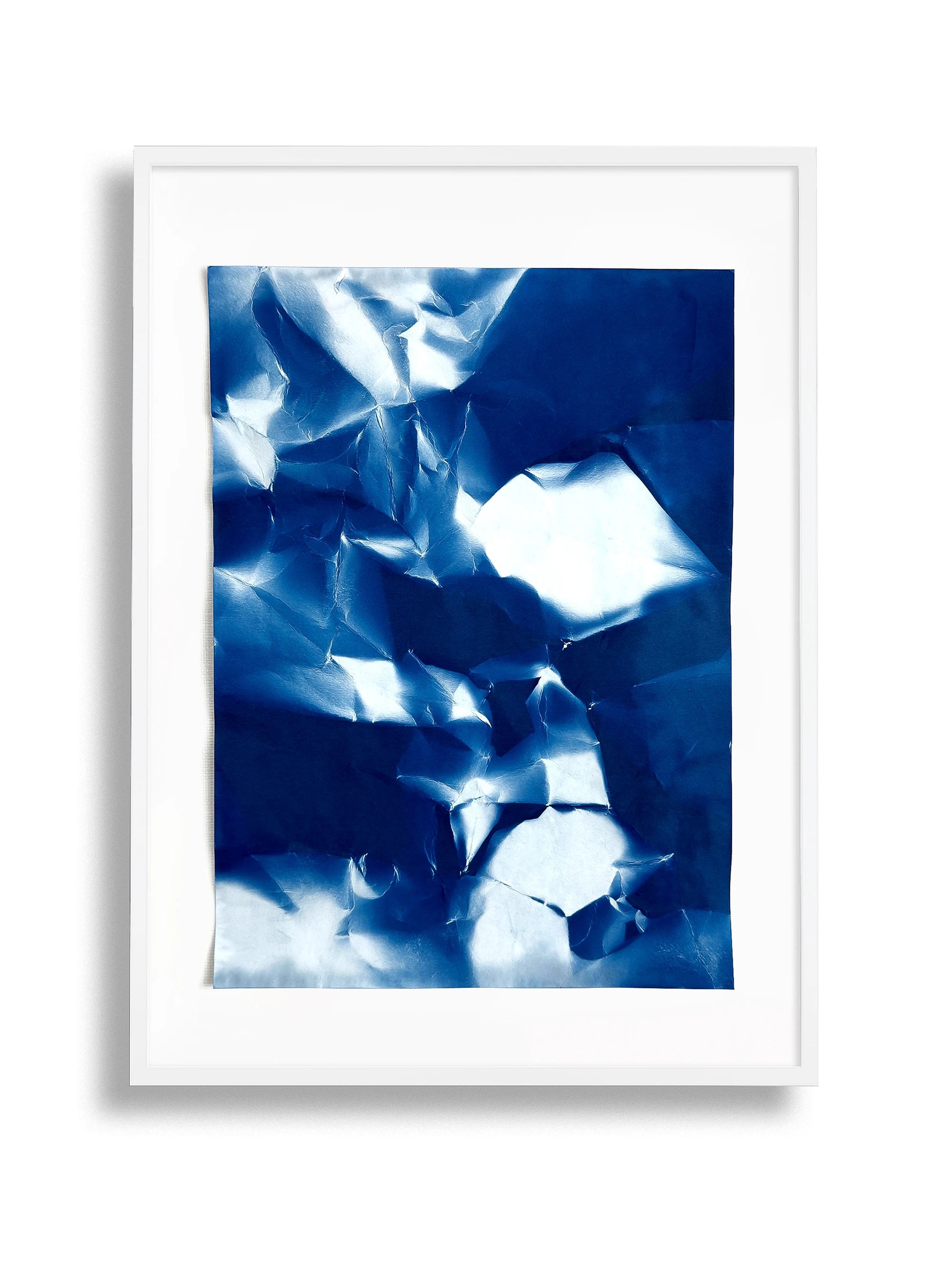 L’opera fa parte della collezione "Utòpia" - Serie "Archetipo", in cui la cianotipia, rivisitata, viene svincolata da negativi e sagome. Sono ora le pieghe stesse della carta a generare pieni e vuoti di luce, rivelando trame inattese. Ogni lavoro è un pezzo unico, frutto di un processo che trasforma l’assenza in presenza.