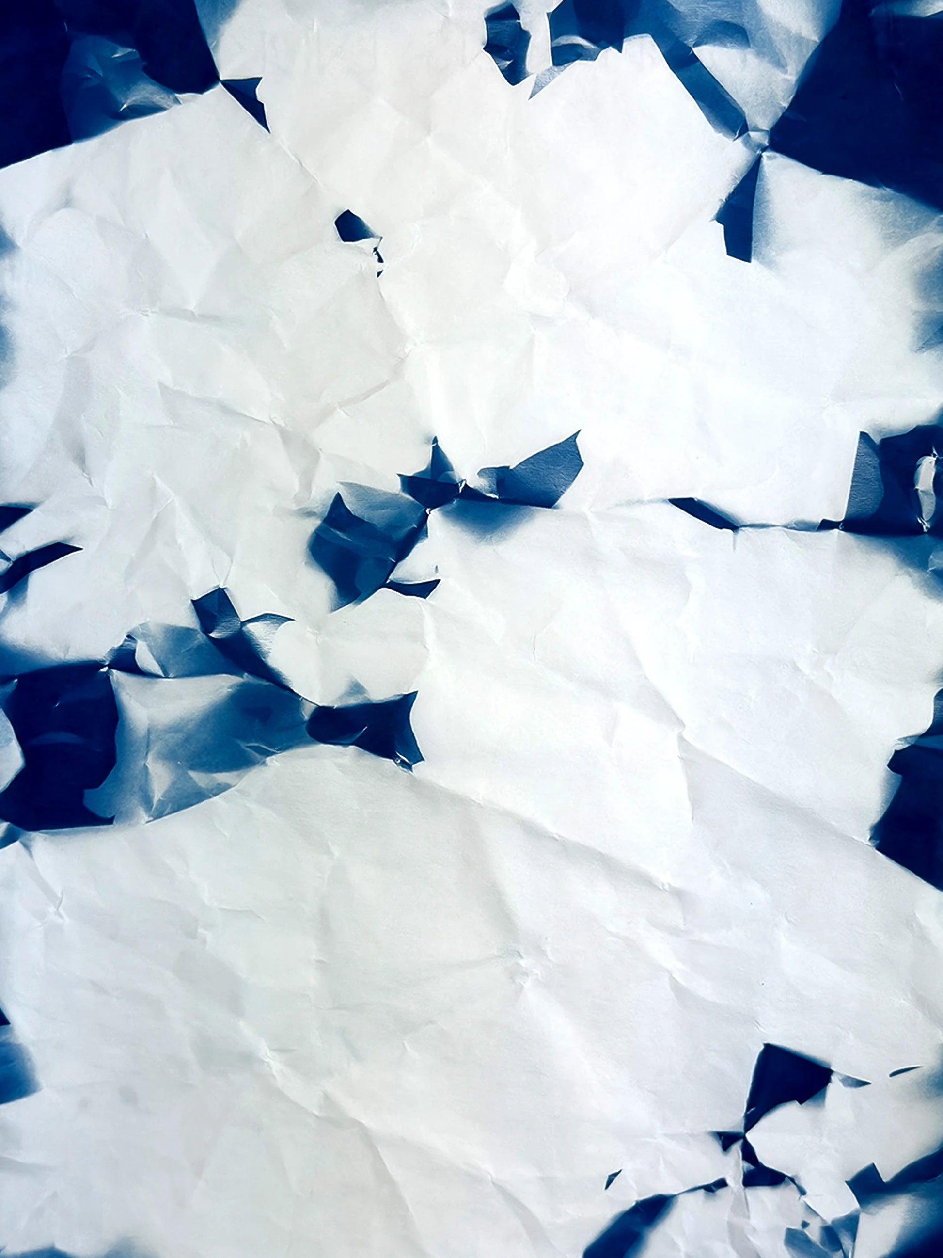 L’opera fa parte della collezione "Utòpia" - Serie "Archetipo", in cui la cianotipia, rivisitata, viene svincolata da negativi e sagome. Sono ora le pieghe stesse della carta a generare pieni e vuoti di luce, rivelando trame inattese. Ogni lavoro è un pezzo unico, frutto di un processo che trasforma l’assenza in presenza.