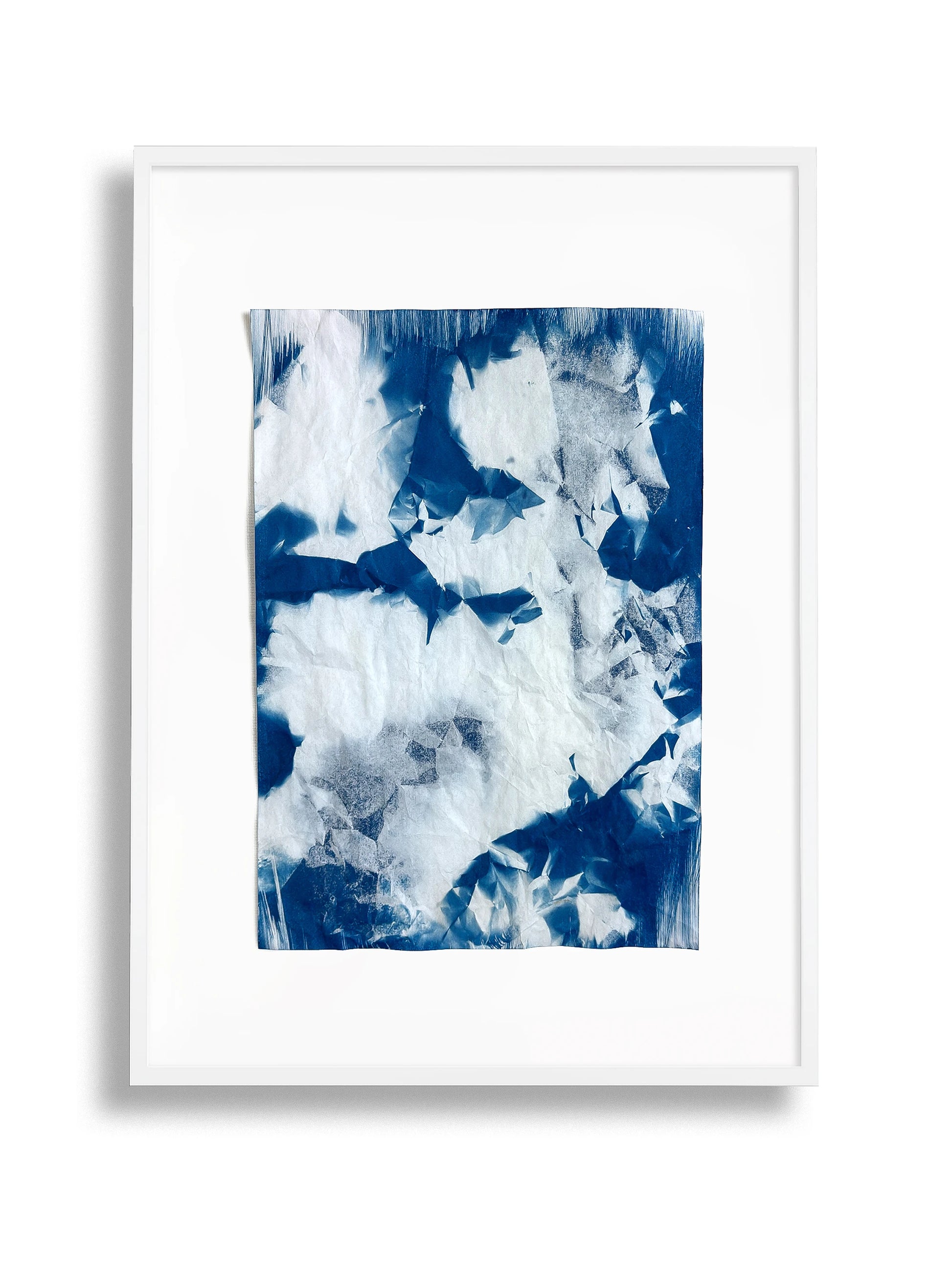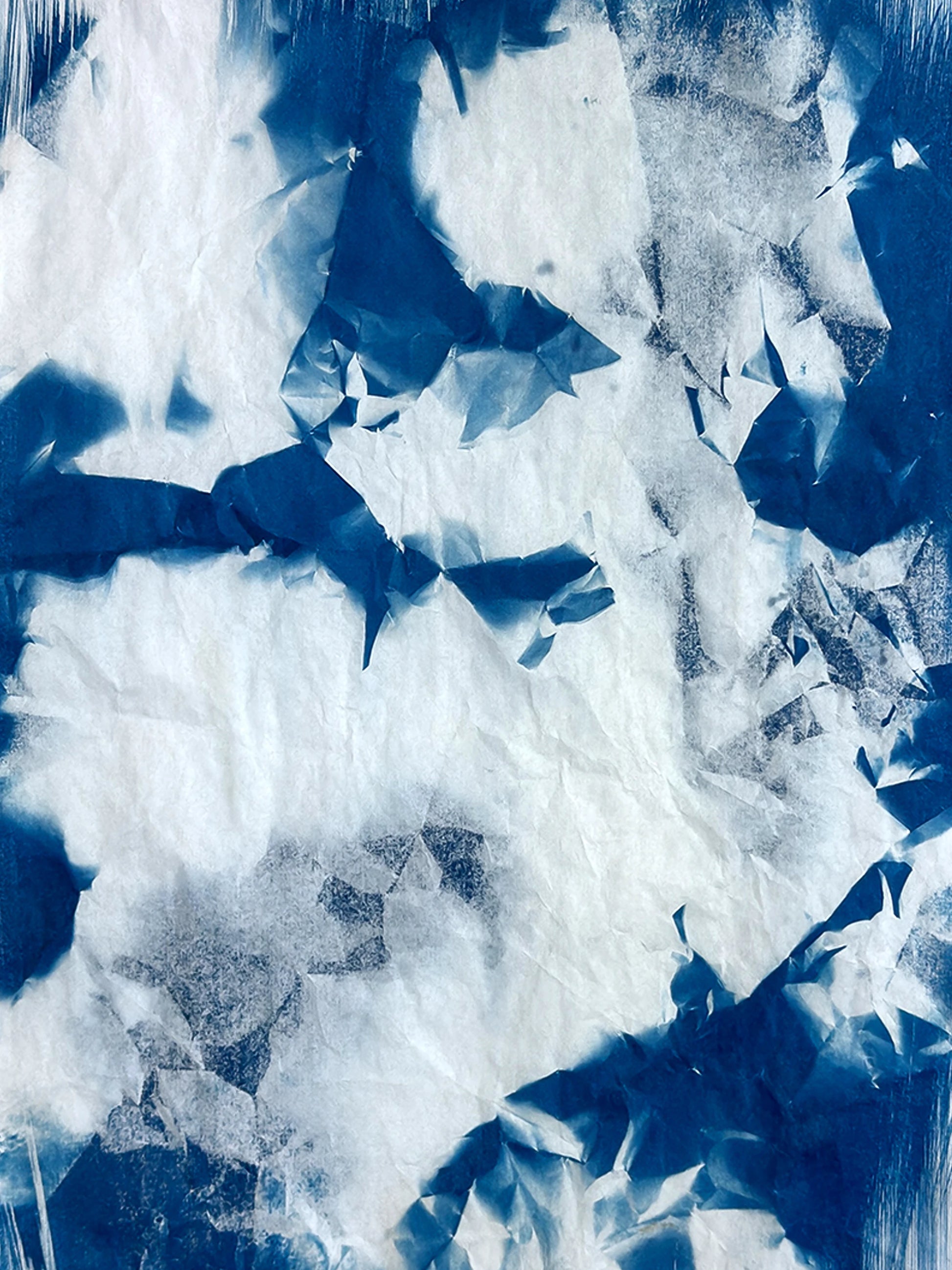 L’opera fa parte della collezione "Utòpia" - Serie "Trasparenza", in cui la cianotipia, rivisitata, viene svincolata da negativi e sagome. Sono ora le pieghe stesse della carta a generare pieni e vuoti di luce, rivelando trame inattese. Ogni lavoro è un pezzo unico, frutto di un processo che trasforma l’assenza in presenza.